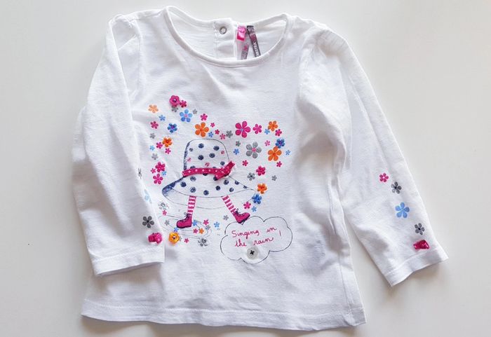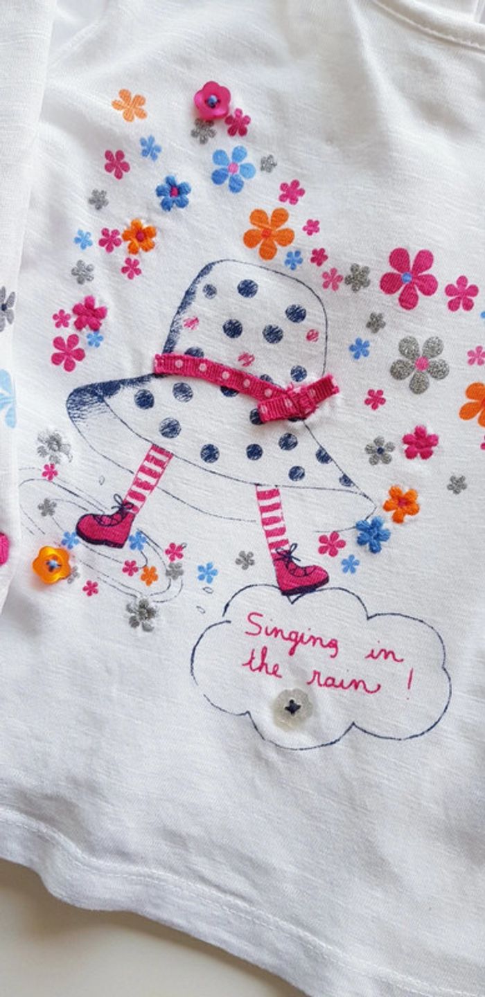 Tee-shirt Orchestra Taille 12 mois Coloris blanc a motifs colorés Petits boutons colorés cousus Très bon état