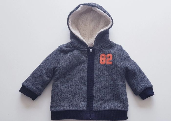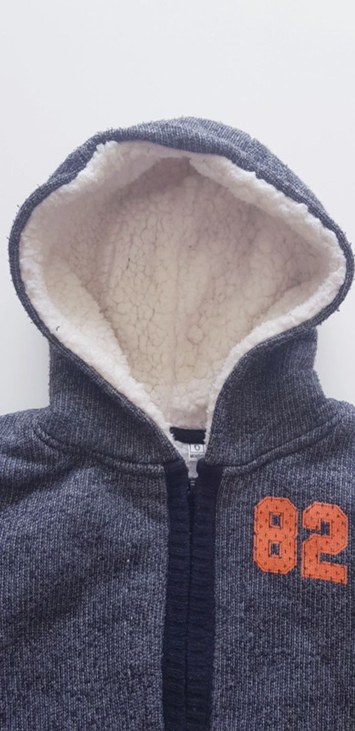 Gilet chaud a capuche doublé a zip Taille 6 mois Coloris gris foncé, intérieur ecru ⚠️ manches non doublées Bien pour automne/début de printemps Très bon état