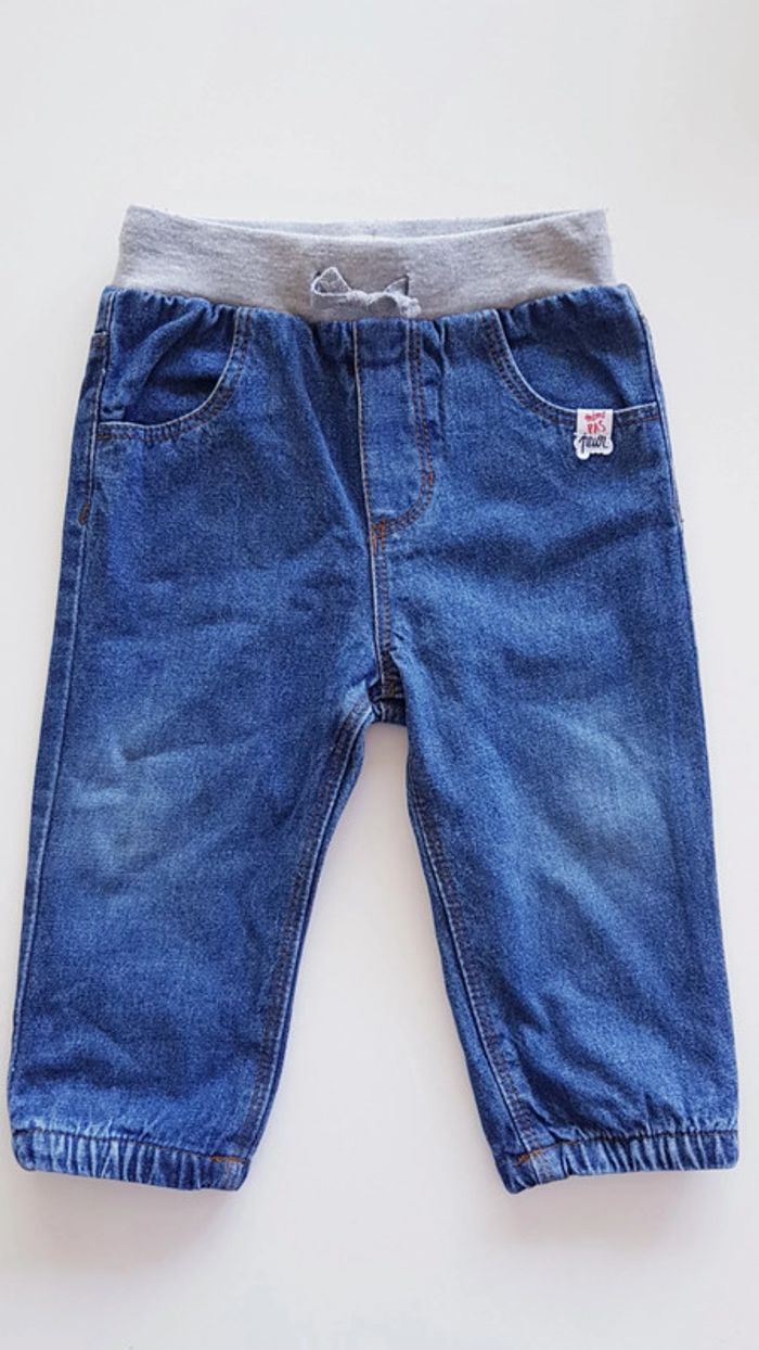 Jean garçon DPAM Taille 12 mois Elastique au bas des jambes Taille élastique avec cordon pour resserrer 2 poches avant et 2 arrières Très bon état, tissu un peu blanchi au niveau des genoux (voir dernière photo)