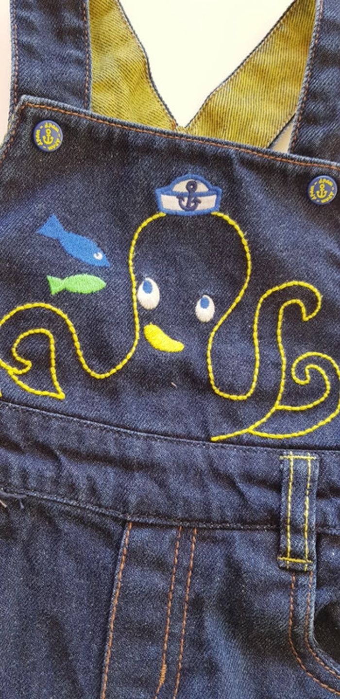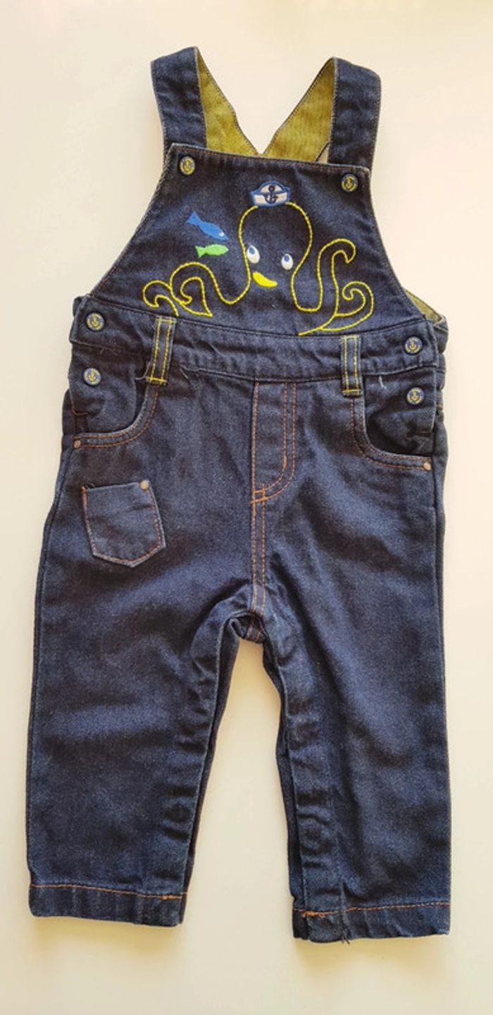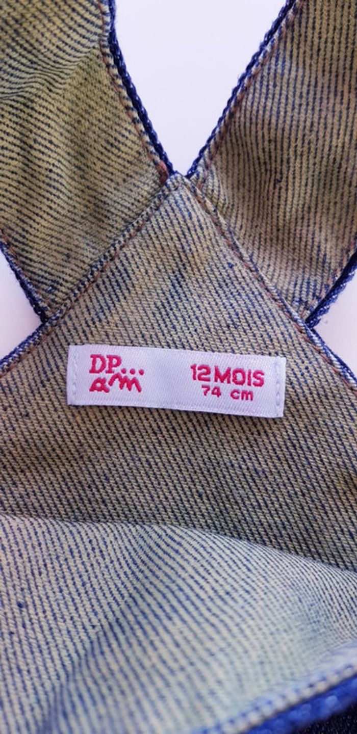 Salopette en jean Du Pareil au Même Taille 12 mois 2 poches latérales 2 boutons pression de chaque côté Boutonnage a l'entrejambe Coloris bleu foncé Excellent état, très peu portée