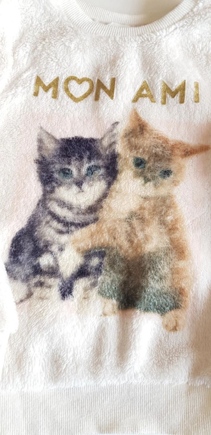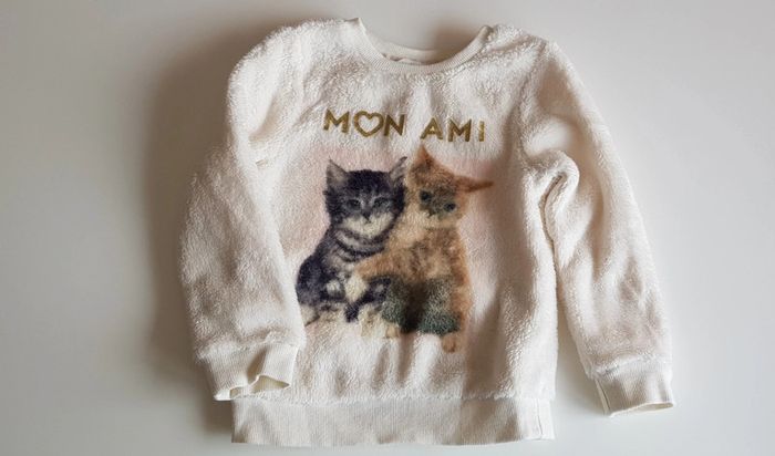 Sweat-shirt H&M Taille 4 ans Coloris ecru avec motif chats Matiere pilou Très bon état