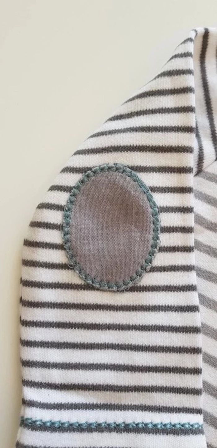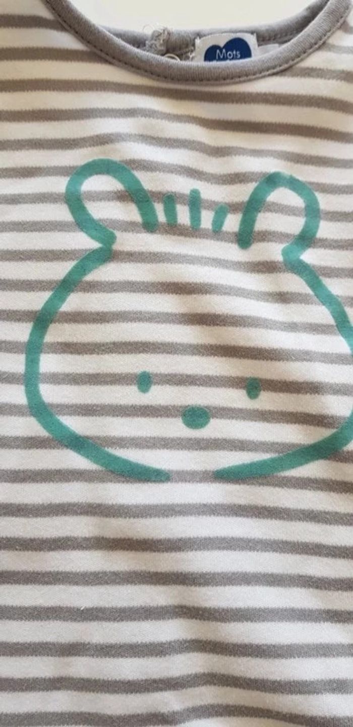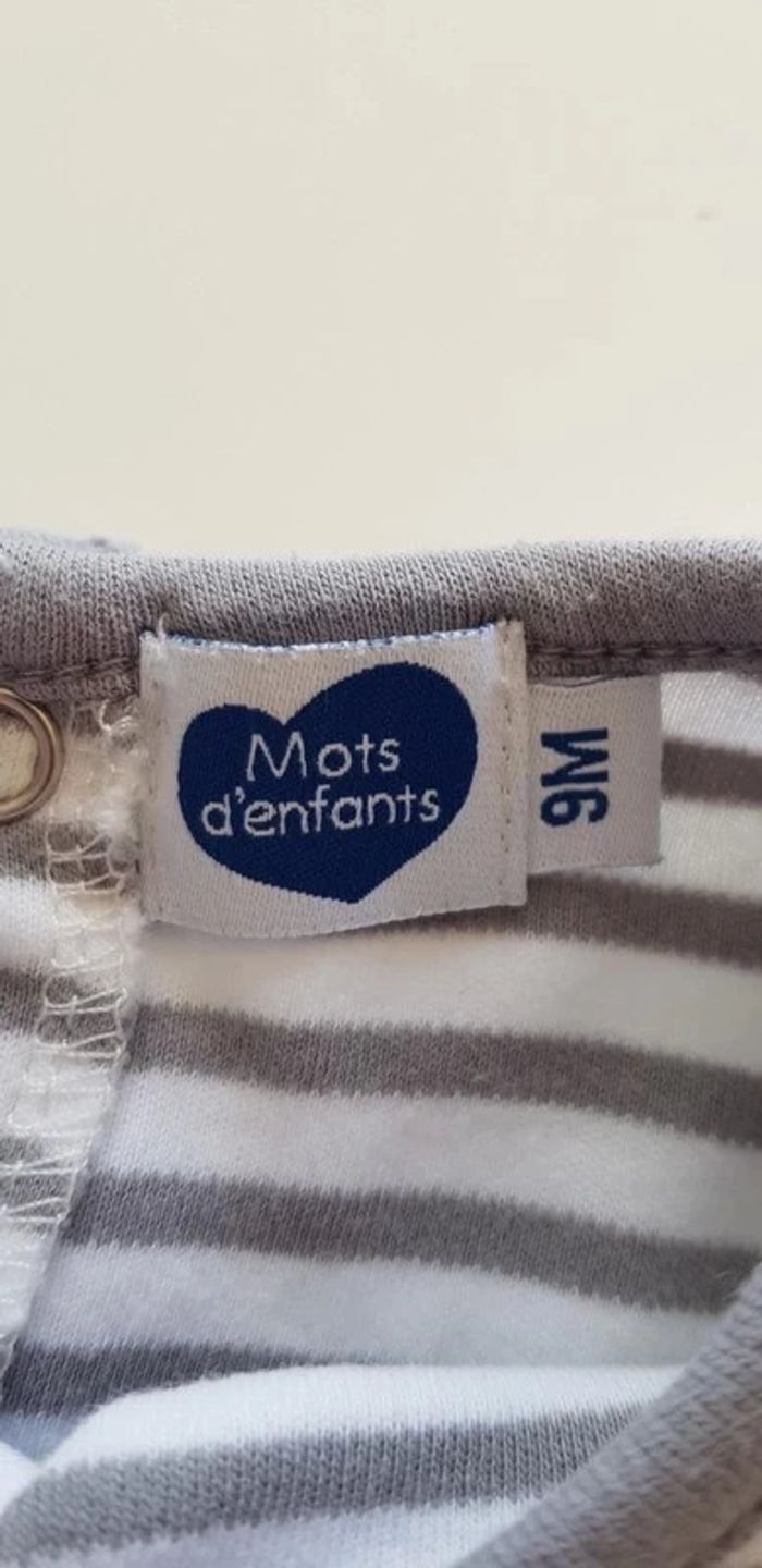 Tee-shirt Mots d'enfants Taille 9 mois Rayé gris/blanc (les rayures sont plus foncées sur les manches) Boutonnage intégral au dos Excellent état, très peu porté