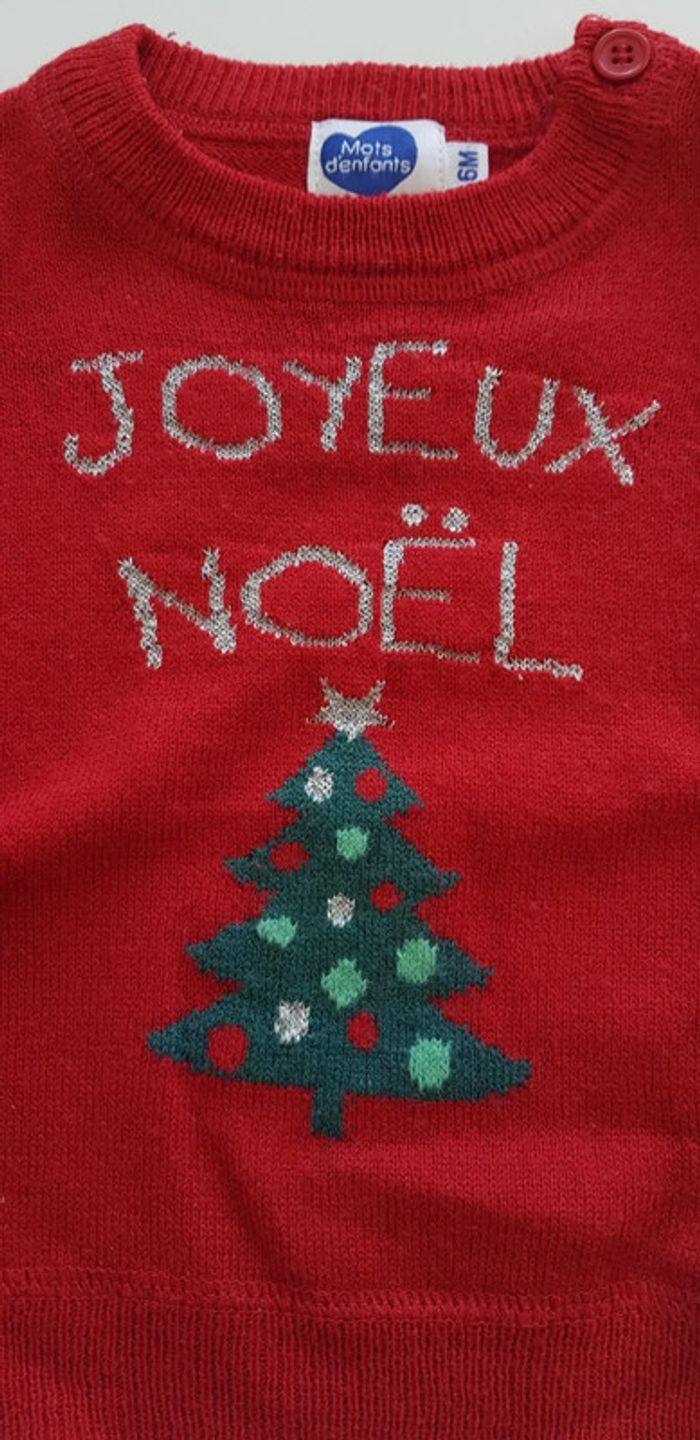 Pull de Noël Mots d'enfants Taille 6 mois Coloris rouge avec sapin vert Très bon état, très peu porté