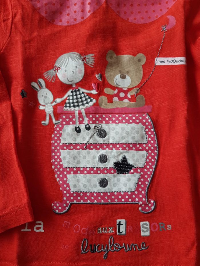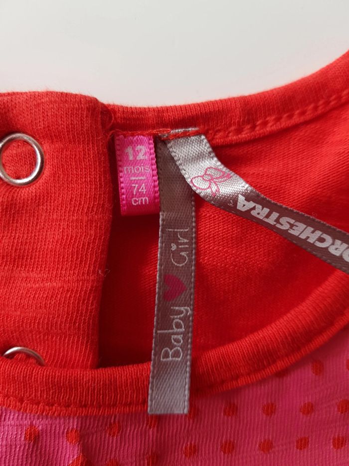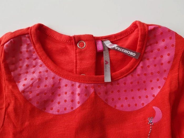 Très joli tee-shirt Orchestra Taille 12 mois Rouge /rose a impression Excellent état, porté peut etre une fois