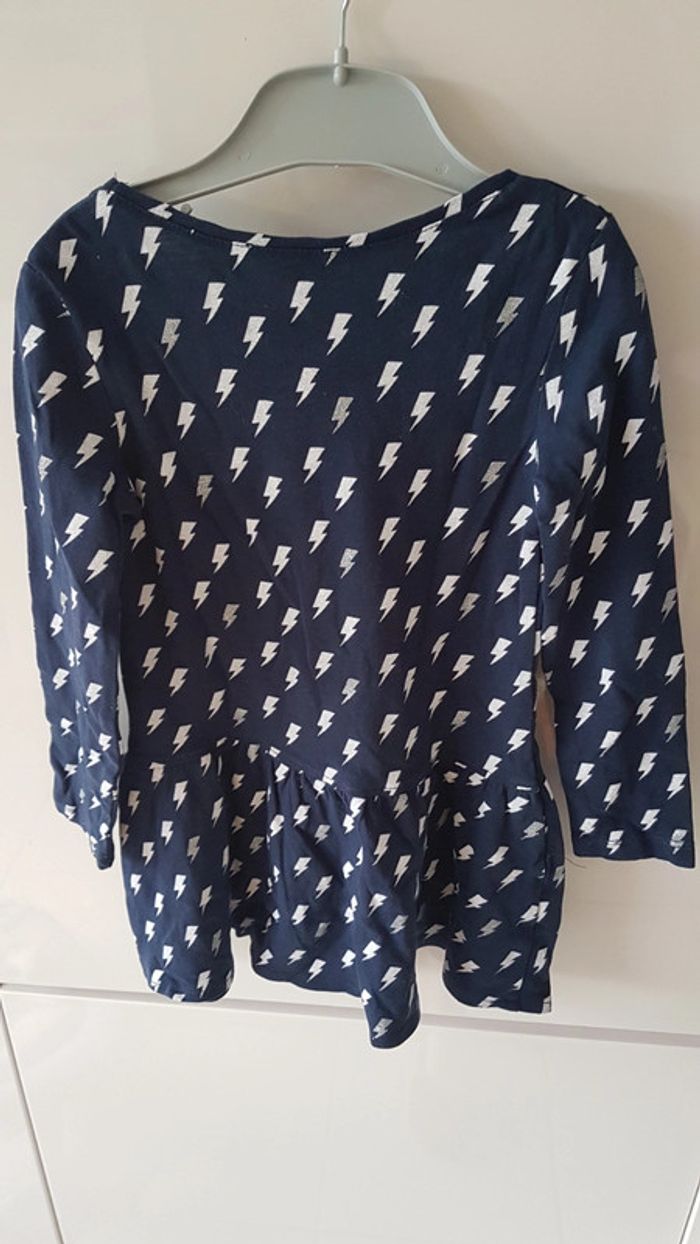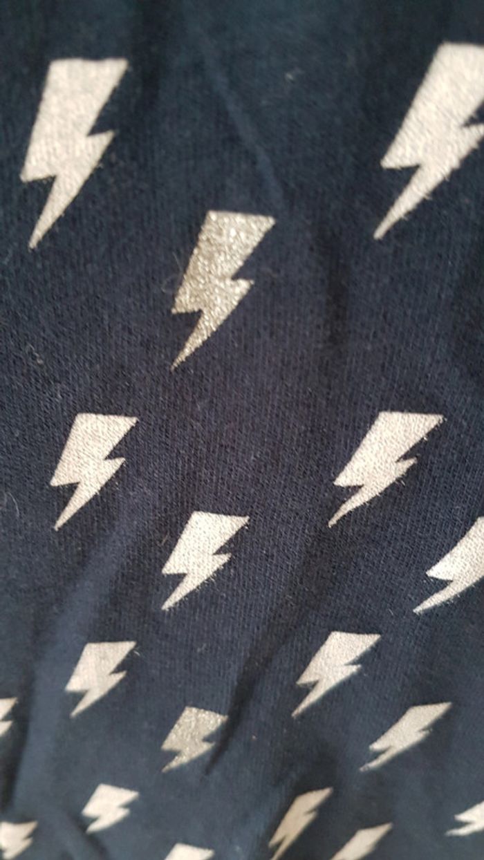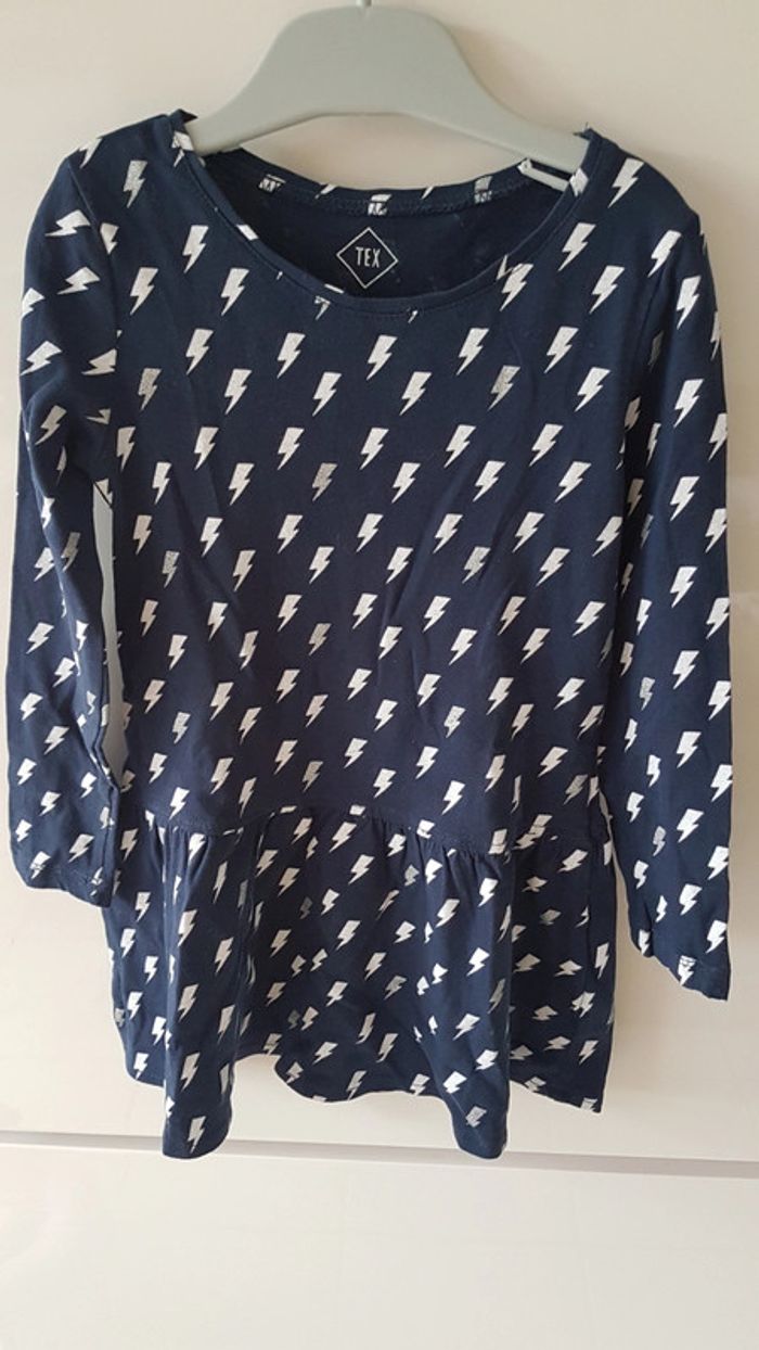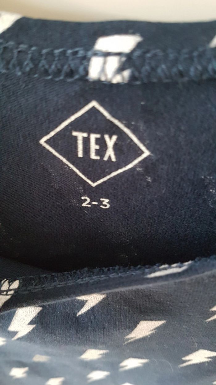Robe marque Tex Taille 2/3 Type patineuse Bleu marine avex motifs éclairs blanc et gris Matière fine, plutot pour le printemps Excellent état, porté qu'une fois