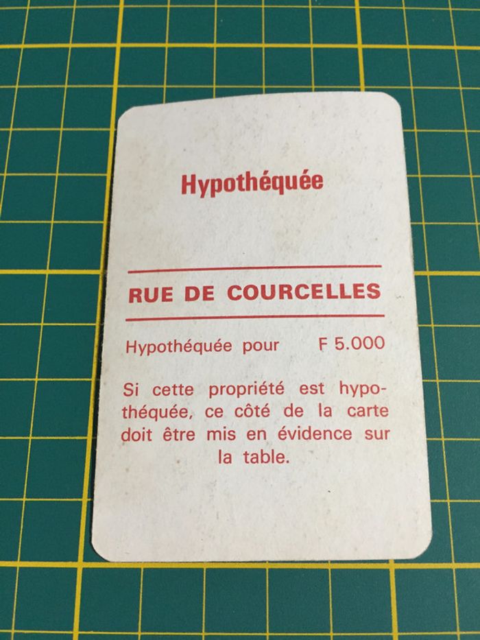 Carte rue de Courcelles pièce détachée Monopoly Miro Parker company #A63
