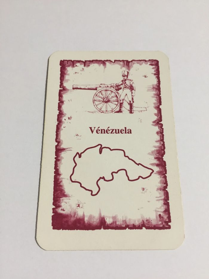 Carte Venezuela pièce détachée jeu de société Risk la conquête du monde Parker #A54 Produit d'occasion Provient d'un jeu de société Risk la conquête du monde de marque Parker Référence interne : #A54 Présente des traces d'usures Vendu seule, vous achetez ce que vous voyez Pour me joindre n'hésitez pas : 06.41.58.49.84 Expédition sous 24/48h maximum, hors dimanche et jours féries Produit emballé sous bulle (recyclé), envoi dans une enveloppe bulle ou colis très bien protégé (produit recyclé). Pour économiser vos frais de port pensez à regrouper vos achats ! Pour toutes questions n'hésitez pas !