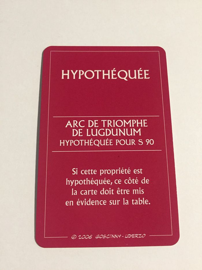 Carte Arc de triomphe de lugdunum jeu de société Monopoly le tour de Gaule d'Astérix Hasbro #A53
