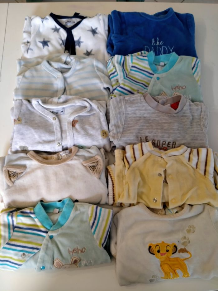 - Lot pyjamas (1€ l'unité, 8€ le lot de 10) - Lot bodies manches longues (mini 2 pièces pour 1€, 10€ le lot de 12) - lot de t shirts manches longues (1€ l'unité, 5€ le lot) - lot de pantalons (1€ l'unité, 6€ le lot de 8)