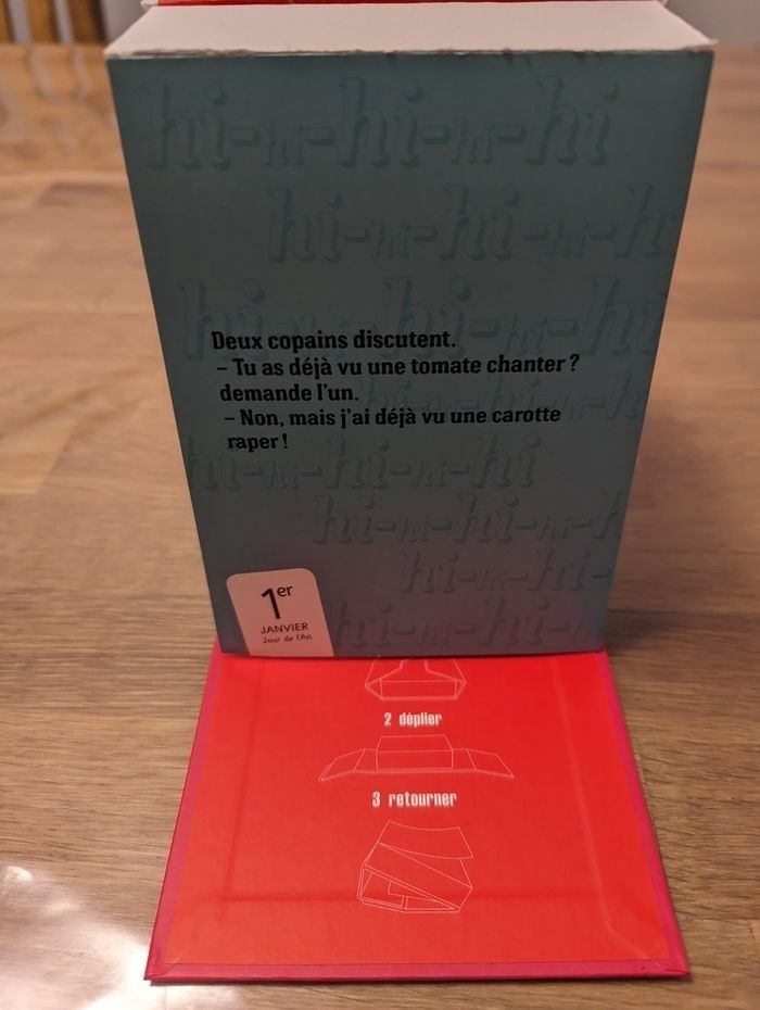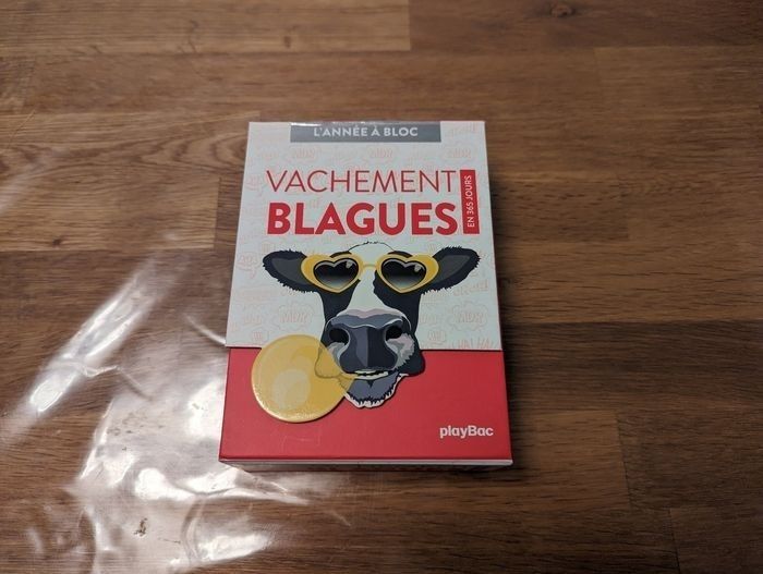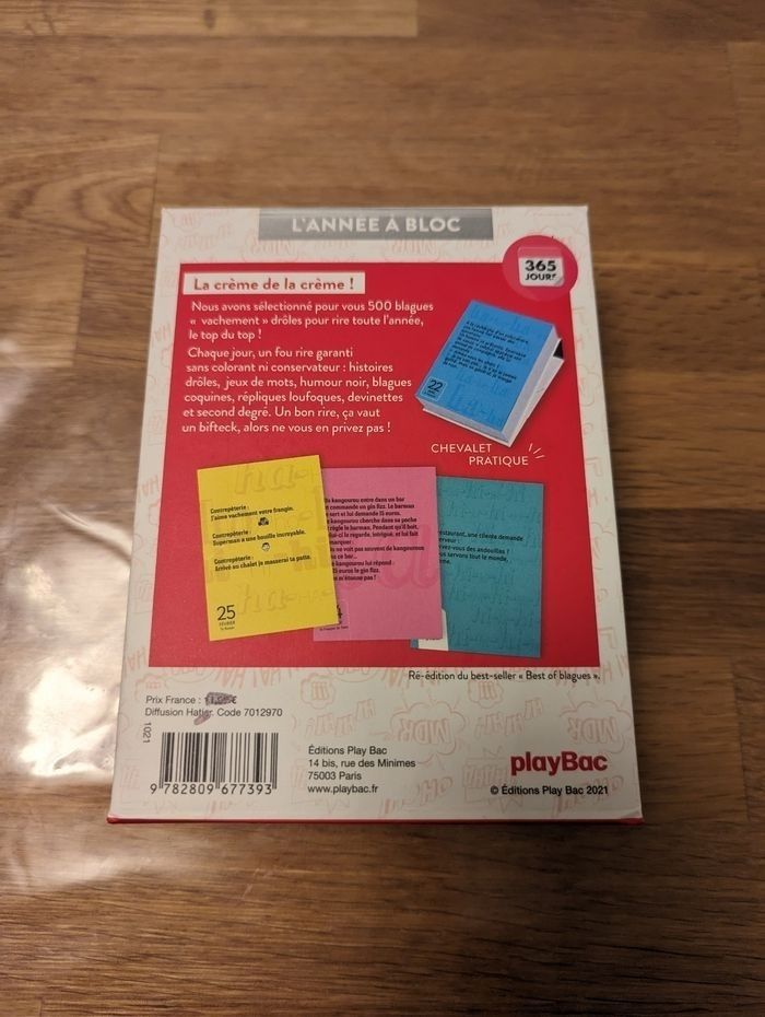 Vachement blagues en 365 jours Playbac, jamais utilisé, la première page a dû être enlevée. Une blague pour chaque jour de l'année.