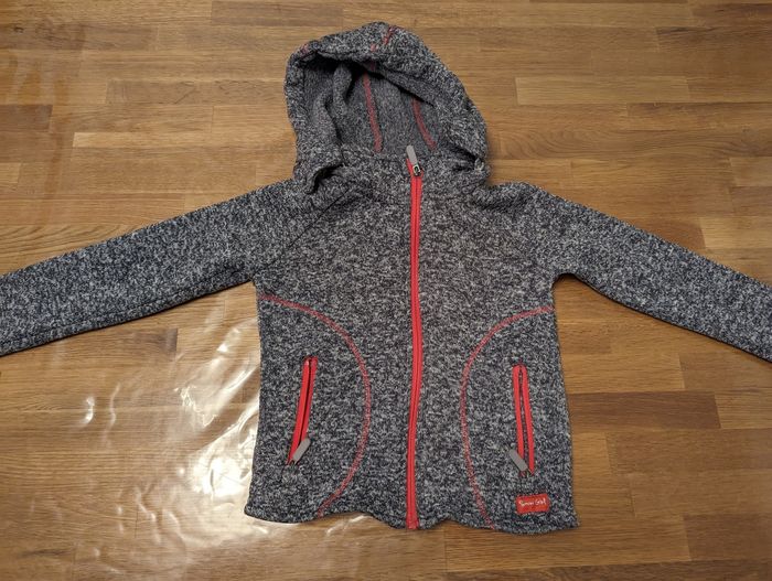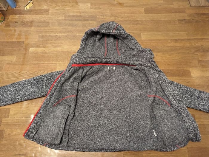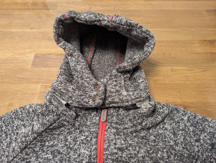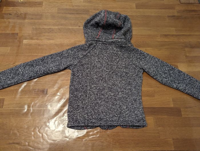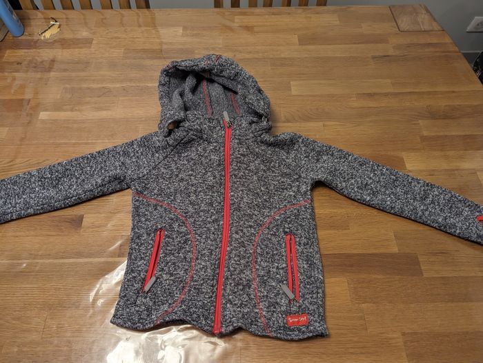 Gilet polaire ski fille 7-8 ans Étiquettes absentes, la taille est une estimation Probablement de la marque Orchestra Gris et rose, très bon état Capuche détachable Fermeture de la poche droite difficile