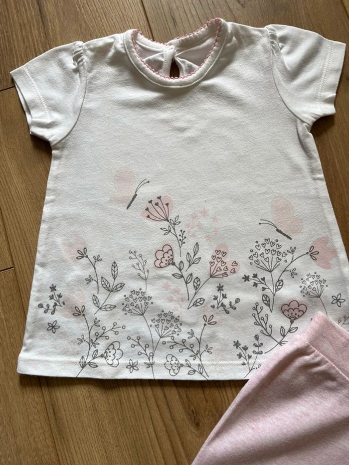 #fille12moisjoelle33130 Ensemble composé D’un tee shirt évasé et de son pantalon assorti Il est noté taille 6/9mois=68/74 cm mais correspond plus à un 74 cm don plus un 12 mois