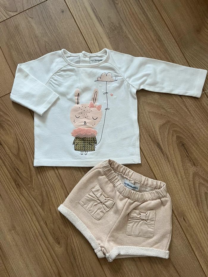 #fille3moisjoelle33130 Lot 3 pièces Vertbaudet très mignon Jupe coton avec tulle polyester Tee shirt manches longues Et un short acheté séparément pour aller aussi avec le tee-shirt. Taille 3 mois Vertbaudet En excellent état