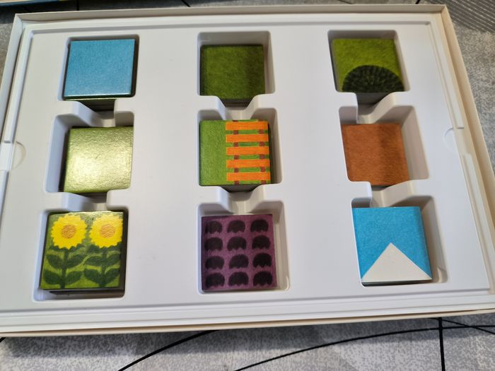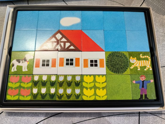 Jeu de cartes pour reconstituer des paysages style puzzle avec maison animaux herbe barrière fleurs Sympa pour l'imagination des enfants Manque 2 cartes mais ne gêne en rien