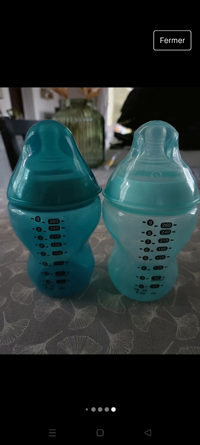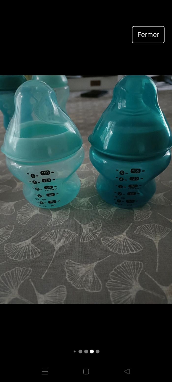 Vends lot de biberons sans les tétines, seront désinfectés ++ avant la vente. N'ont pas bcp servis voir certains neufs.