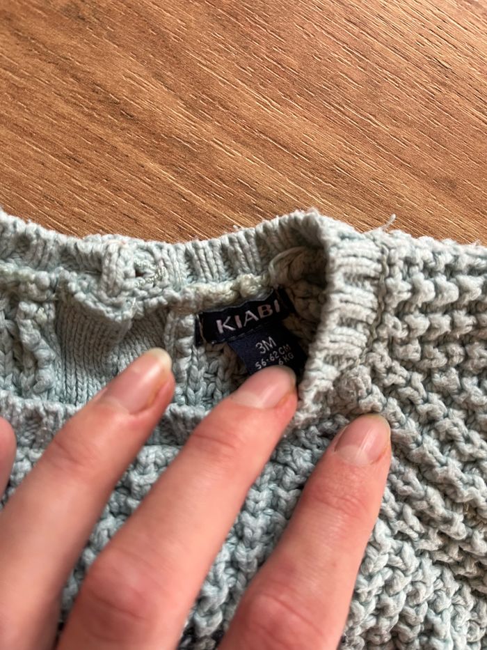 Vends ce très joli pull de la marque Kiabi. Couleur menthe, taille trois mois.