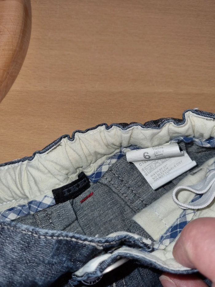 Jolie jupe en jean originale marque IKKS, plus longue sur l'arrière, avec des plis derrière. Marque de qualité. En parfait état peu porté. Taille 6 ans, réglable à la taille #6anssevy57