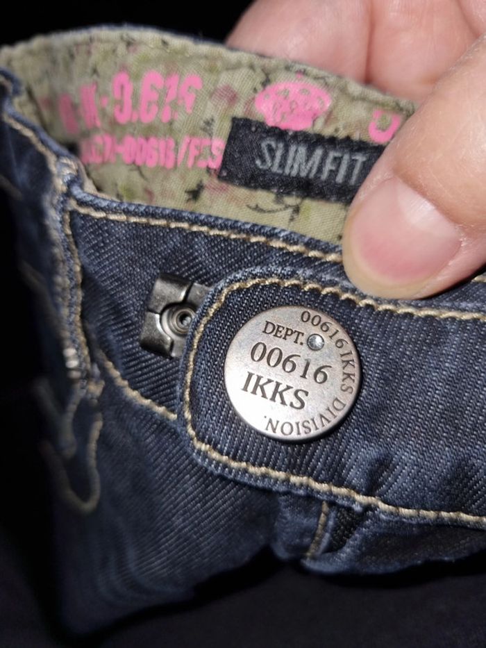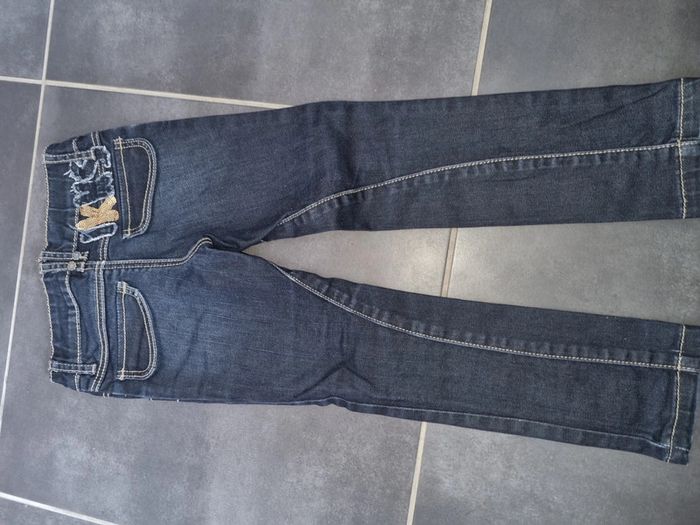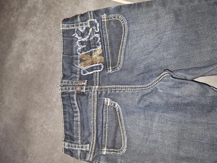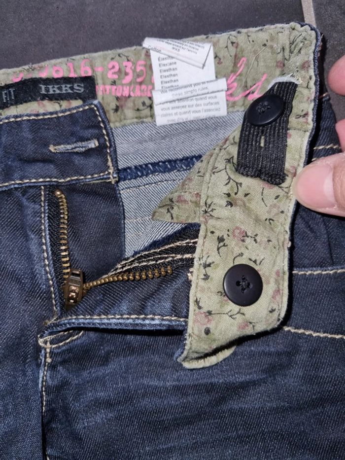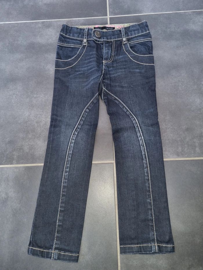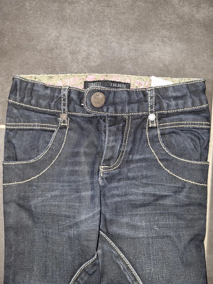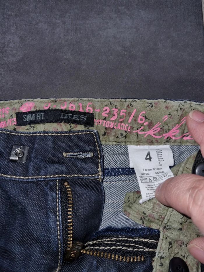 Joli slim bleu brut en TBE, taille réglable. Pleins de jolis détails. Taille 4 ans, IKKS #4anssevy57