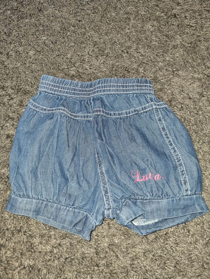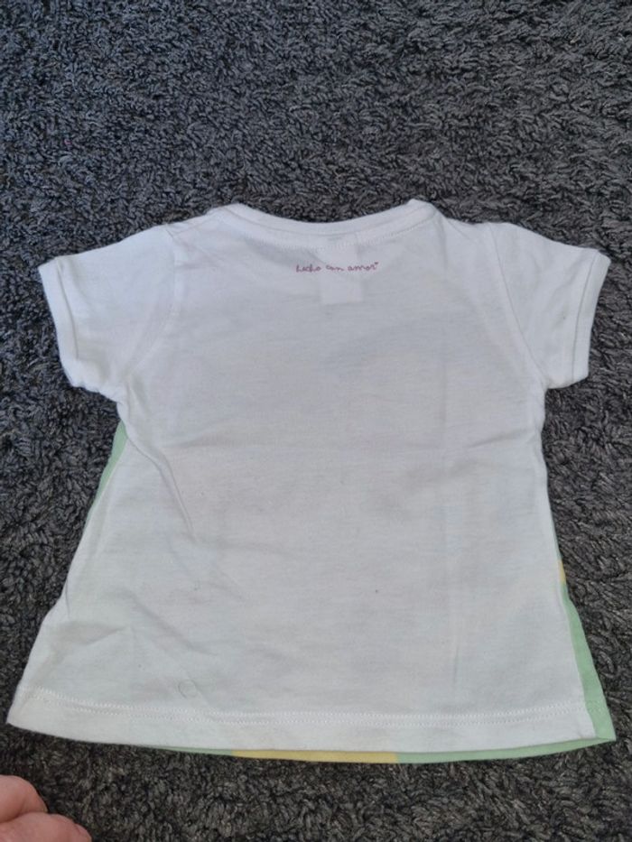 Ensemble en TBE T-shirt Zara blanc avec motifs 6/9 mois et short en jean léger (petit 12 mois correspond à du 6/9) #6moissevy57