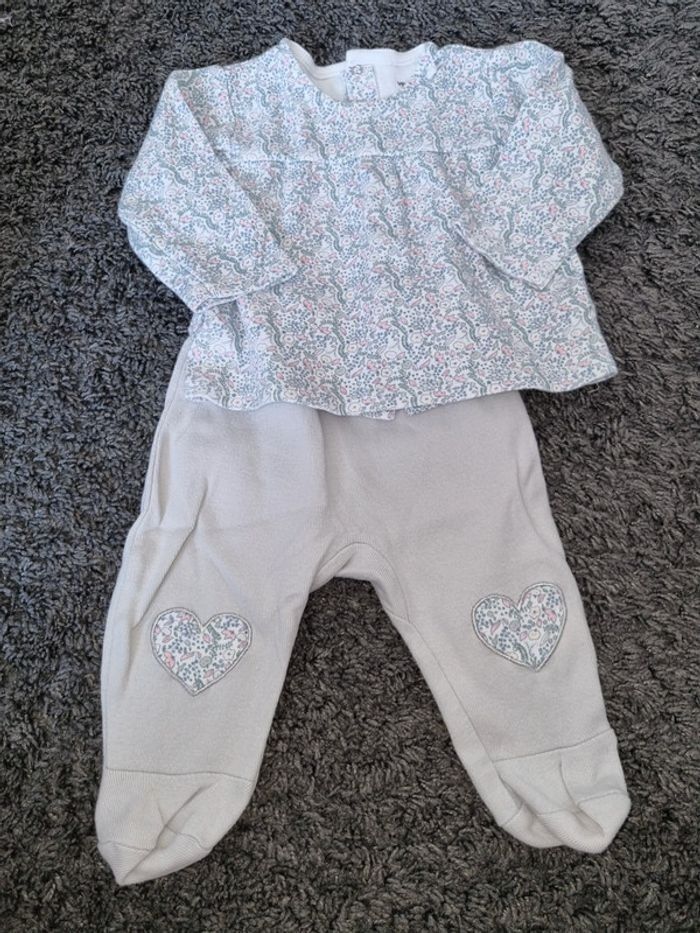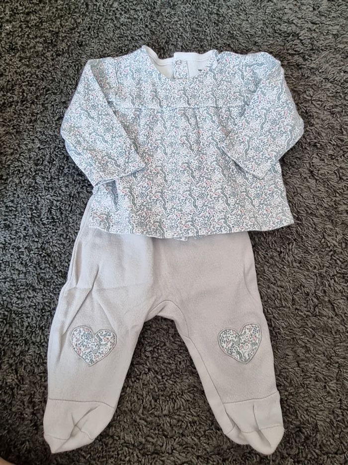 Joli pyjama gris et imprimé Liberty, 2 pièces en coton avec pâtes pour raccordé le haut et le bas. Taille 6 mois marque Vertbaudet #6moissevy57