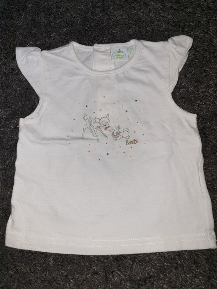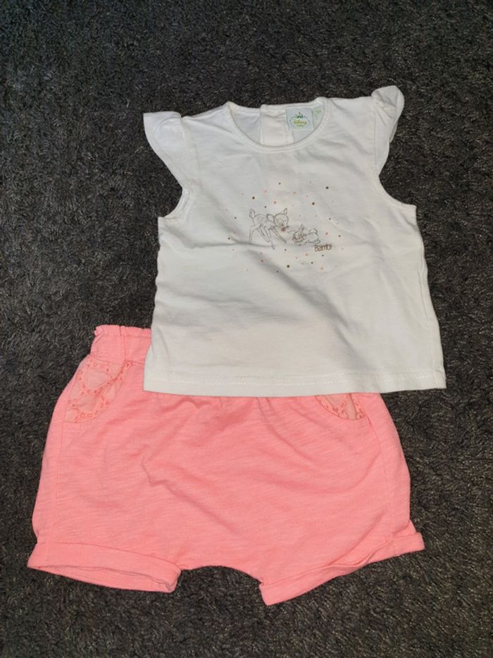 Joli ensemble composé d'un T-shirt blanc motif Bambi et 1 short rose taille elastique en TBE Taille 6 mois T-shirt Disney #6moissevy57