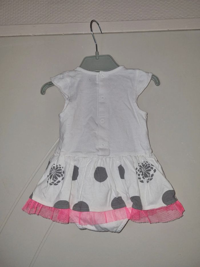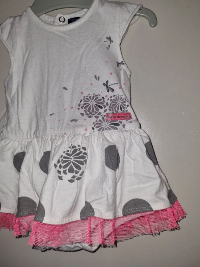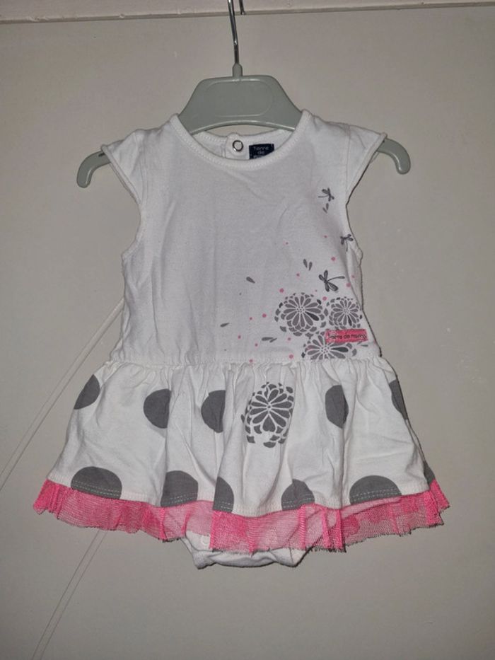 Joli robe bodie blanche avec motif gris en bon état Taille 6 mois, marque Terre de Marins #6moissevy57