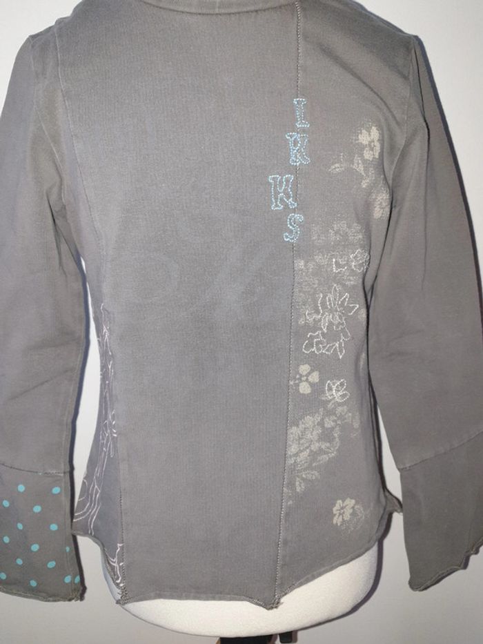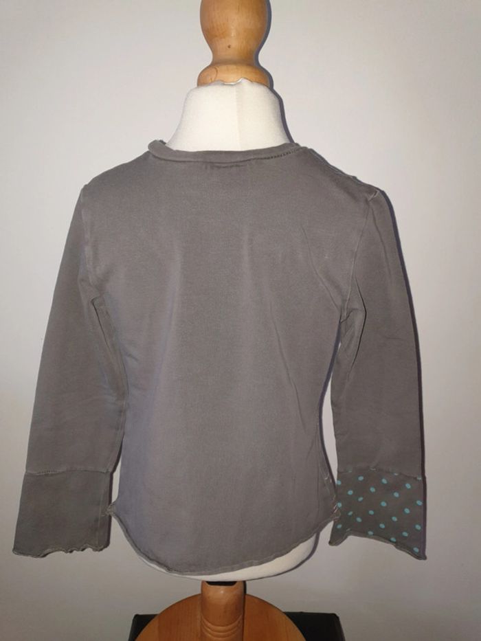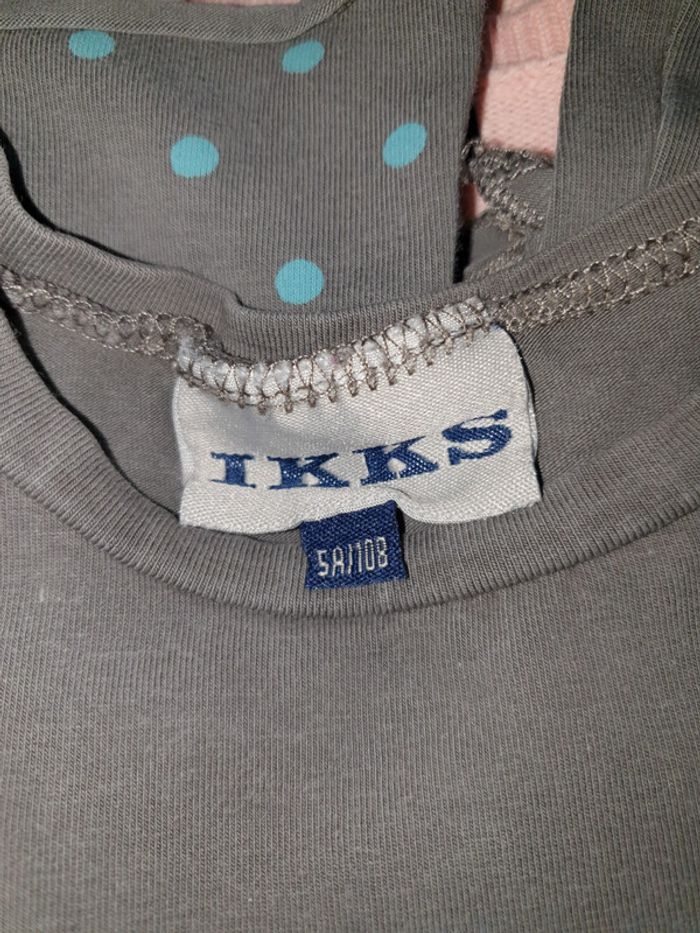 T-shirt manches longues gris, broderie IKKS en turquoise. Porté mais reste en bon état. Taille 5 ans, mais taille plutôt petit comme un 4 ans. #4anssevy57