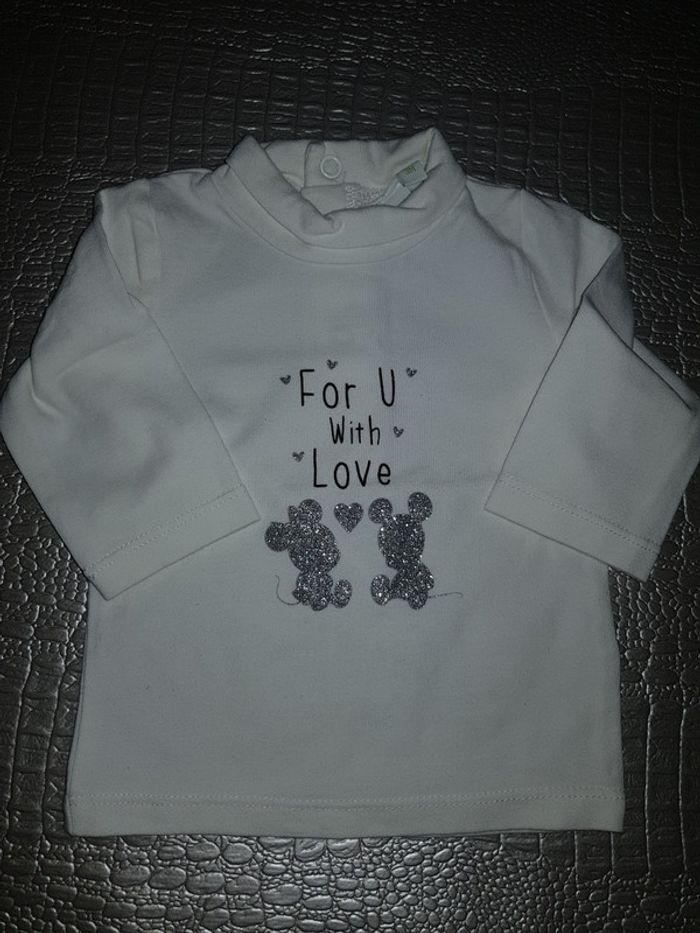 Sweat fin à col roulé blanc motif Mickey et Minnie Neuf, lavé 1 fois Taille 3 mois, Marque Disney