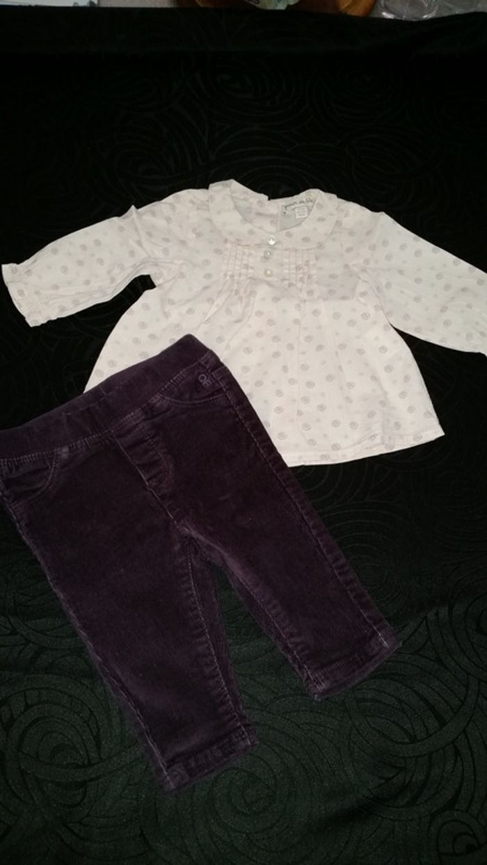 Ensemble fille 3 mois blouse rose et jegging velours violet Obaibi - photo numéro 2