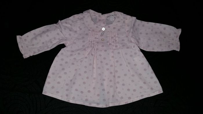 Vend joli ensemble en parfait état composé d'une blouse fleuri rose poudre de marque Grain de blé (Z) et d'un jegging côtelé violet Obaibi taille élastique #ensemblefille3mois #bébéfille #blouse #jegging #obaibi #Z #rosepoudre #violet