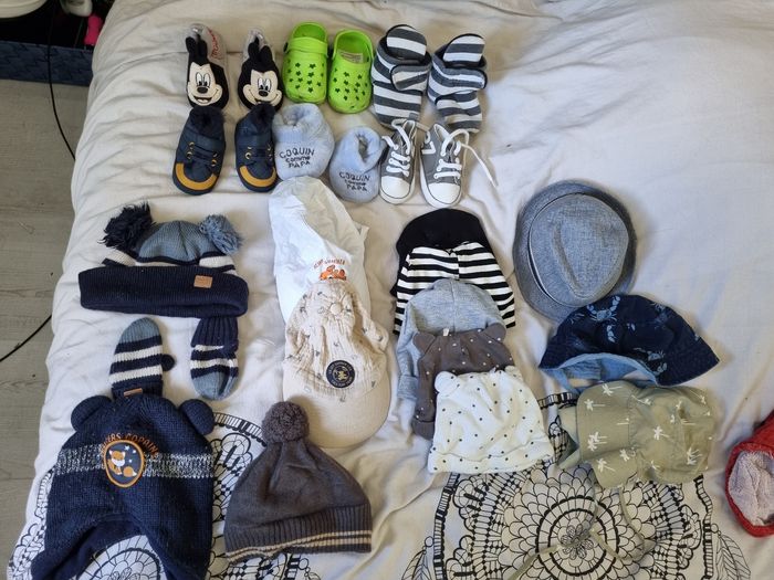 Lots bonnets/chaussures/chaussons/bobs - photo numéro 1