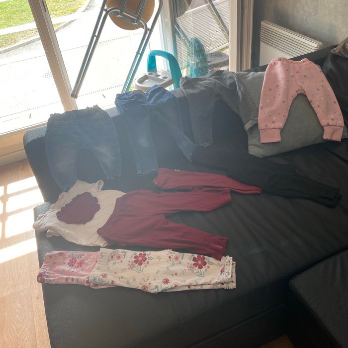 Vend lot fille de leggins 1 ensemble deux pièce 1 leggins Bordeaux 2 leggins fleur blanc et rose 2 leggins noir simple 1 jean court 1 leggins jean 1 leggins gris 1 jogging rose