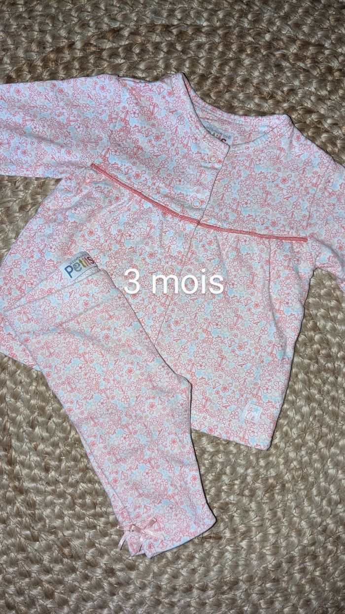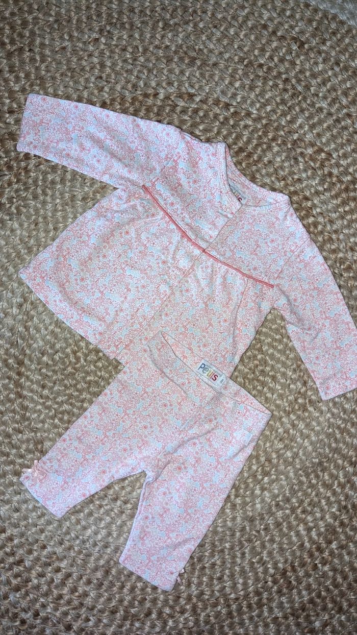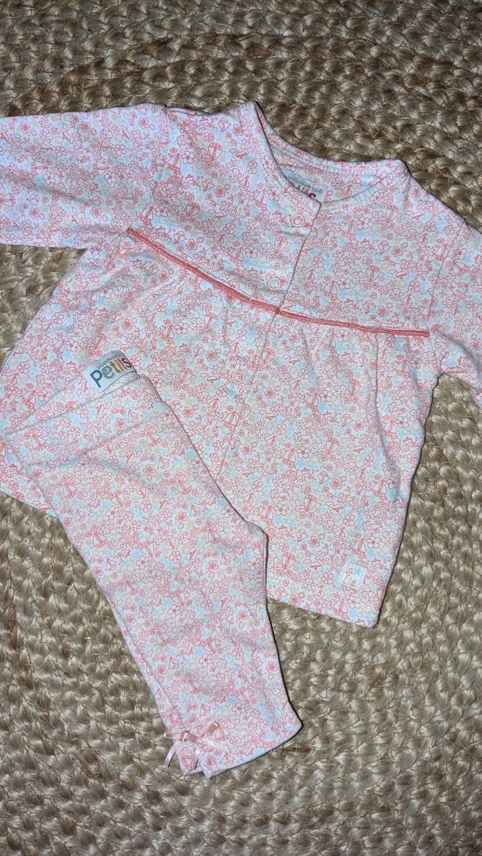 Ensemble fille. Marque La compagnie des petits. Taille 3 mois. Pull gilet a motifs. Ouverture intégrale a pressions. Pantalon legging assorti. Très bon état.