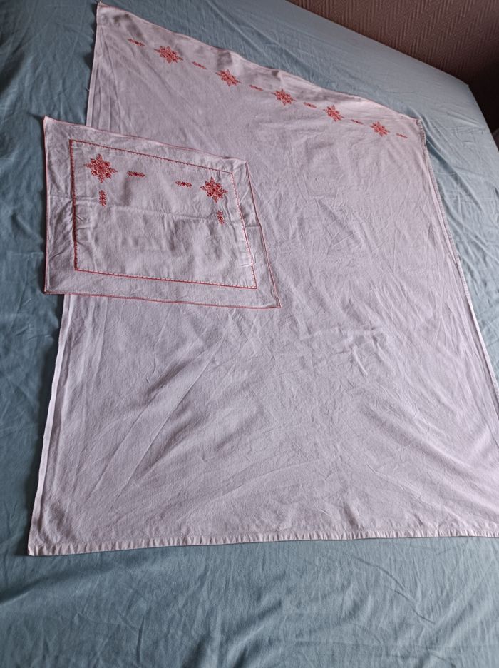 En très bon état. Mesures sur les photos, drap + taie d'oreiller. Maison non fumeur. N'hésitez pas à visiter mon dressing.