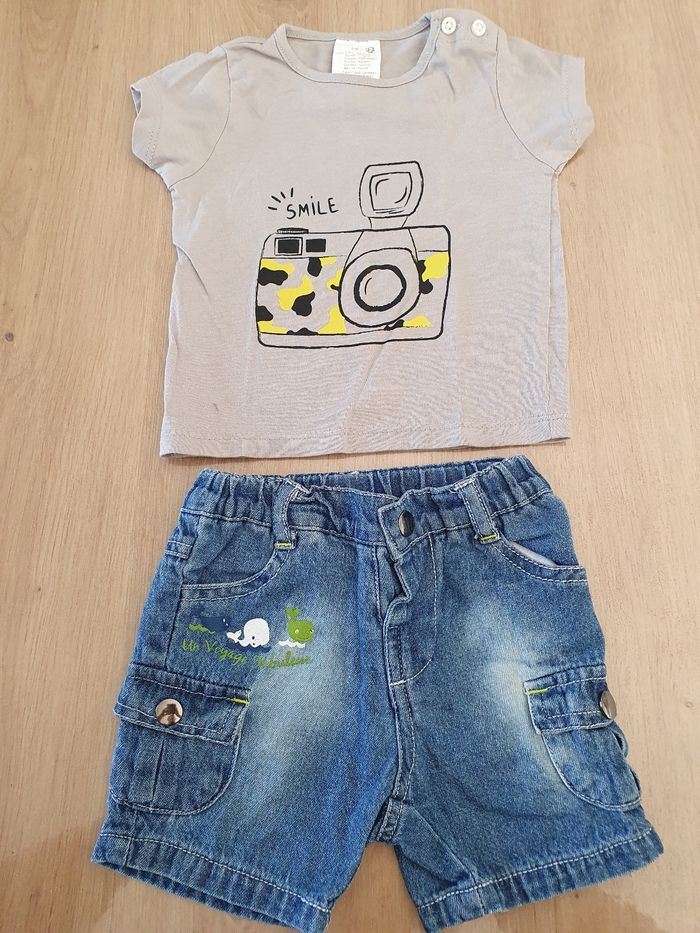 Ensemble garçon tee-shirt et short Taille 3 mois Marque Kiabi et Tissaia Très bon état