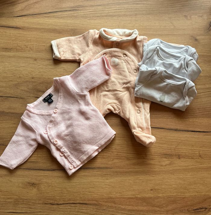 Vends lot taille naissance composé d’une layette rose, d’un pyjama et de deux body. Marque Kiabi. Neuf, sans étiquette, pas utilisé, car trop petit à la naissance de ma fille.