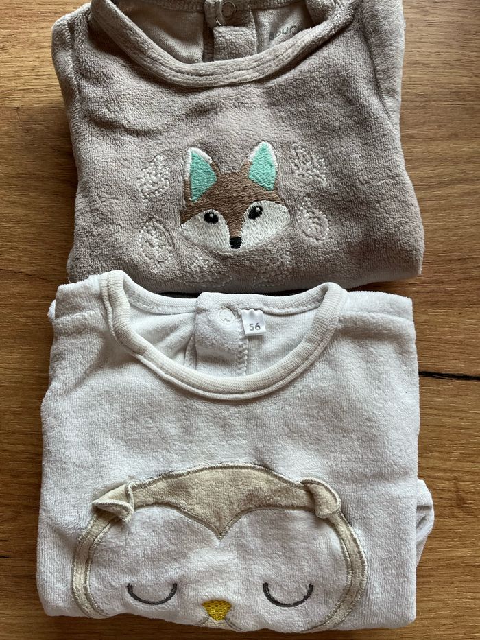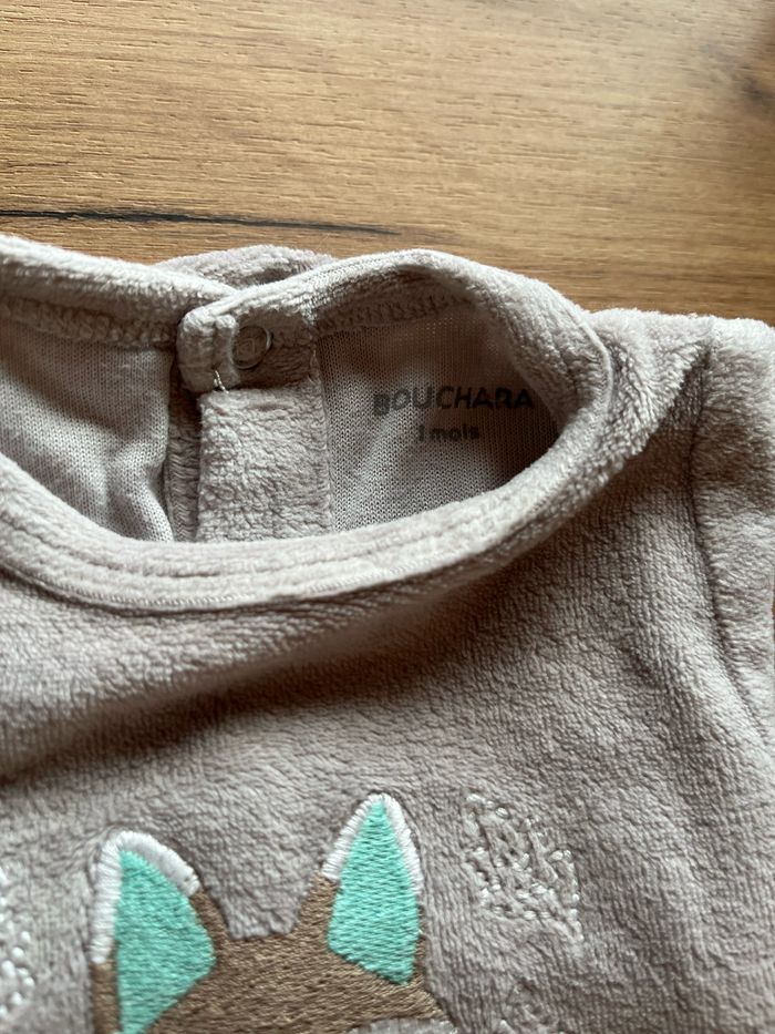 Lots de deux pyjamas en velours, taille un mois. Lin est de la marque Bouchara, l’autre de marque inconnue.
