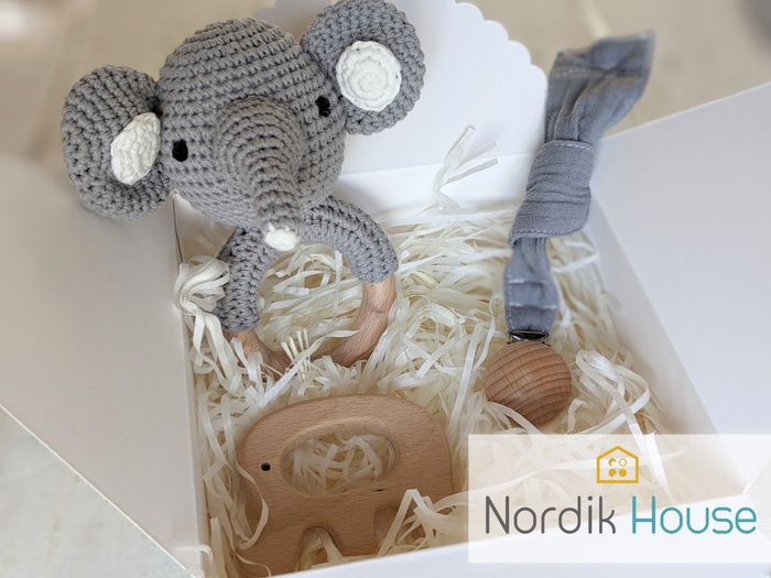 Hochet crochet éléphant+ anneau de dentition+ attache tétine - photo numéro 1