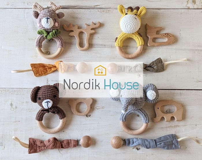 Set complet, à offrir en cadeau de naissance ou pour un 1er anniversaire. Faites moi savoir quelle couleur de boîte vous désirez ! Comprend: - Anneau de dentition pour soulager les petites gencives endolories ! Prise en main facile - Attache tétine pour que votre bout d'chou ne la perde jamais! Avec son clip, il se fixera a tous ses vêtements. - Hochet en crochet avec son anneau en bois de hêtre et son grelot à l'intérieur. Vous pouvez commander le lot simple ou avec sa boîte cadeau pour offrir, il suffit de choisir l'option! Mes produits sont: En bois naturel (hêtre) , sans BPA ni autre produits chimiques, ces objet sont conformes aux normes de l'UE. *BPA FREE, NON TOXIC, CE CERTIFIED