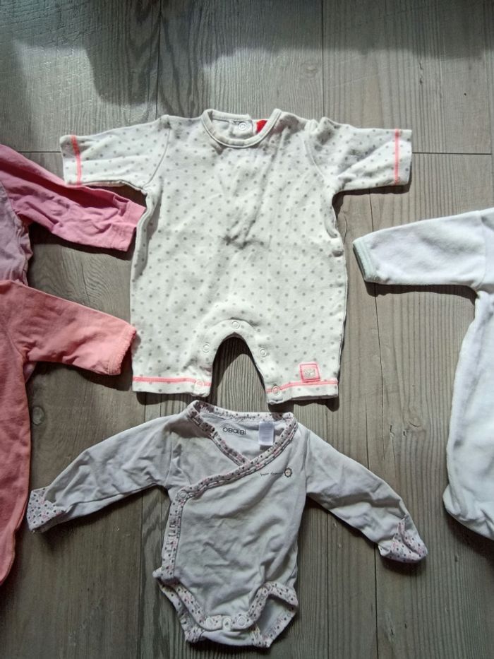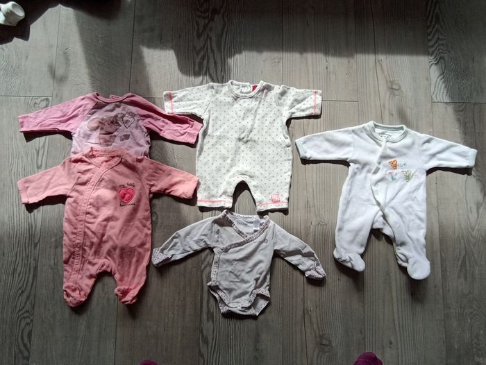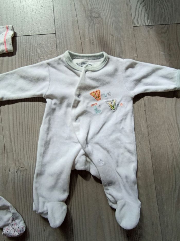 Lot bébé 0 mois naissance Lot etat nikel avec Deux pijamas fins un ouverture devant et un a l'arrière. Un pijama velours Un body manche longue Et un ensemble avec pied ouvert Idéal mi saison et été J'ai d'autres articles bébé vous pouvez vous même faire votre lots si jamais