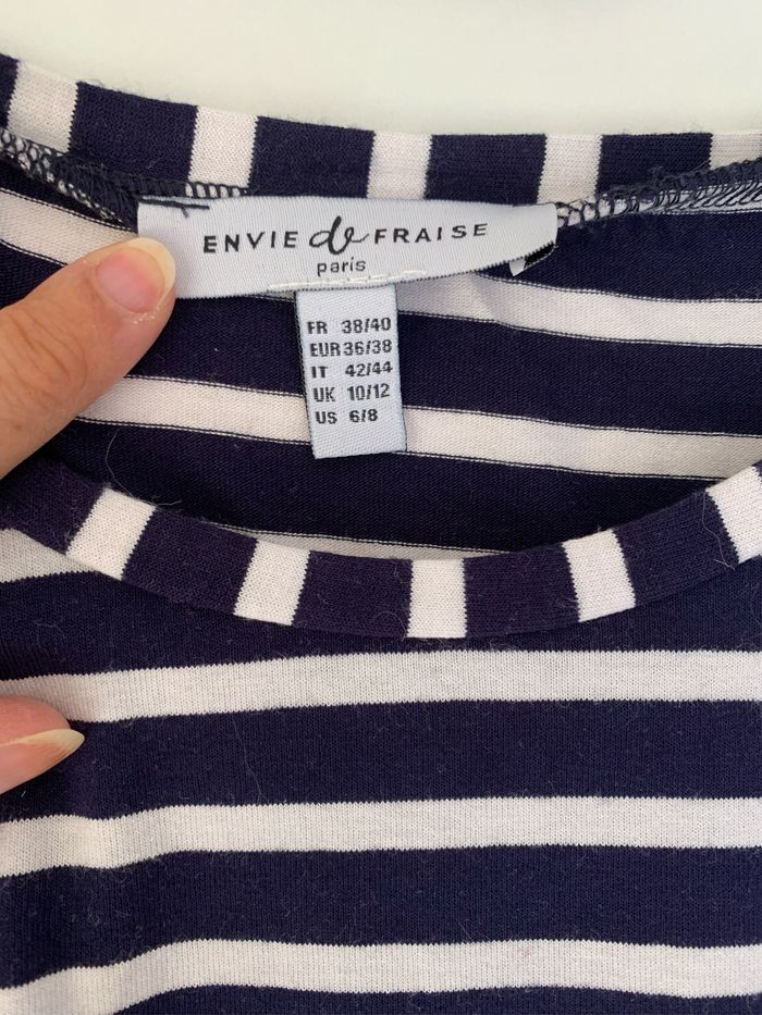 Tshirt manches courtes marinière (bleu marine) Grossesse Envie de fraise Excellent état,comme neuf. Quasi jamais porté Taille 38/40, correspond à un grand 38 #enviedefraise #grossesse #maternité #tshirtmaternite #marinieregrossesse #vetementmaternite #maternity #tshirtgrossesse #topmaternité