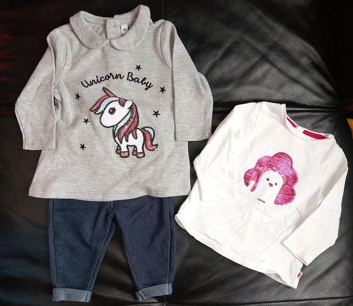 🏵 50% activé des 5 articles achetés🏵 🌼 20% activé des 3 articles achetés🌼 🌹 10% activé des 2 articles achetés🌷 Ensemble comprenant 1 jegging kitchoun, 1 tee-shirt manches longues obaibi et 1 pull sans marque le tout à juste été lavé et non porté donc TBE. Pas de trous pas de tâches