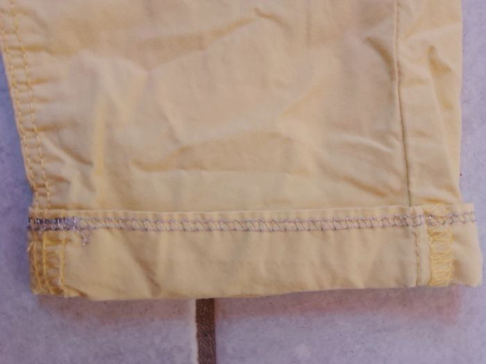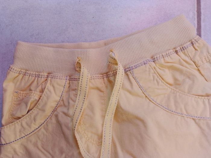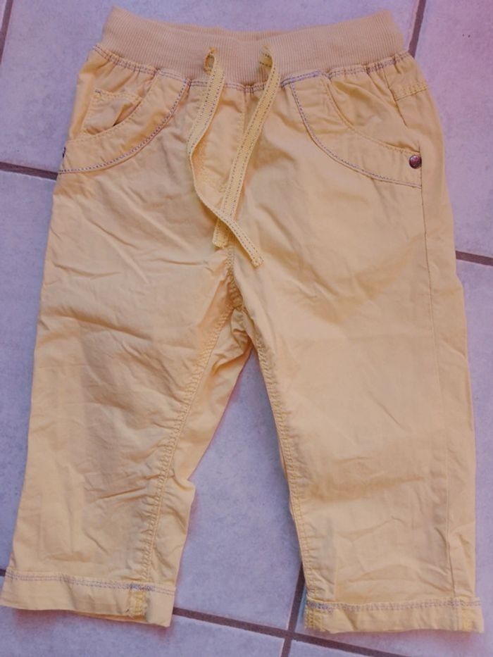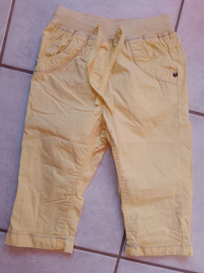 Pantacourt fille Orchestra 3 ans. Jaune citron (couleur beaucoup plus prononcée que sur la photo), en toile légère.
