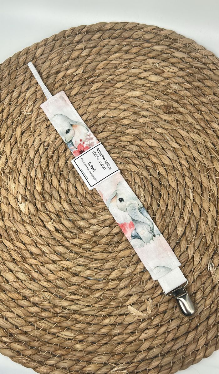 Attache tétine Motifs éléphant Couleur rose Fait main par mes soins Autres tissus et créations disponibles sur demande
