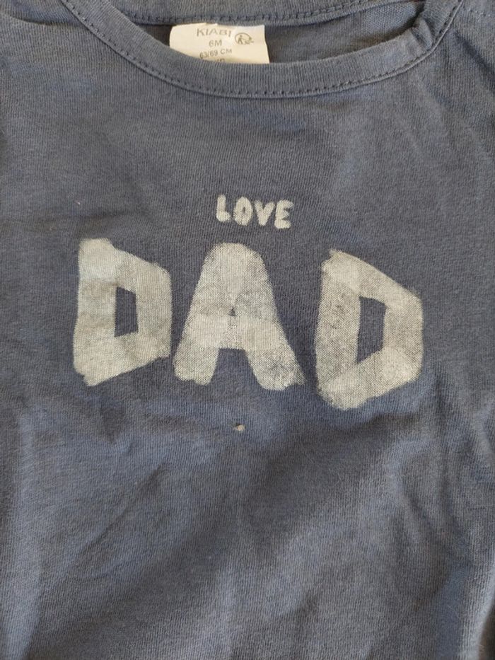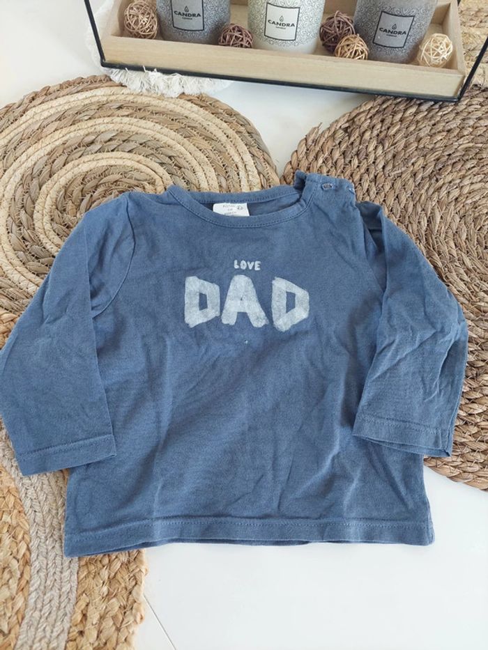T-shirt manches longues, inscription "LOVE DAD". 2 boutons sur le côté du col pour faciliter l'enfilage. Kiabi, 6 mois, 63-69 cm, 8kg #6moisaurelilou34