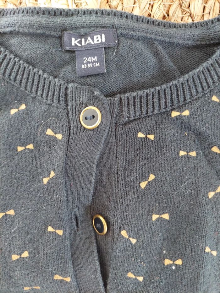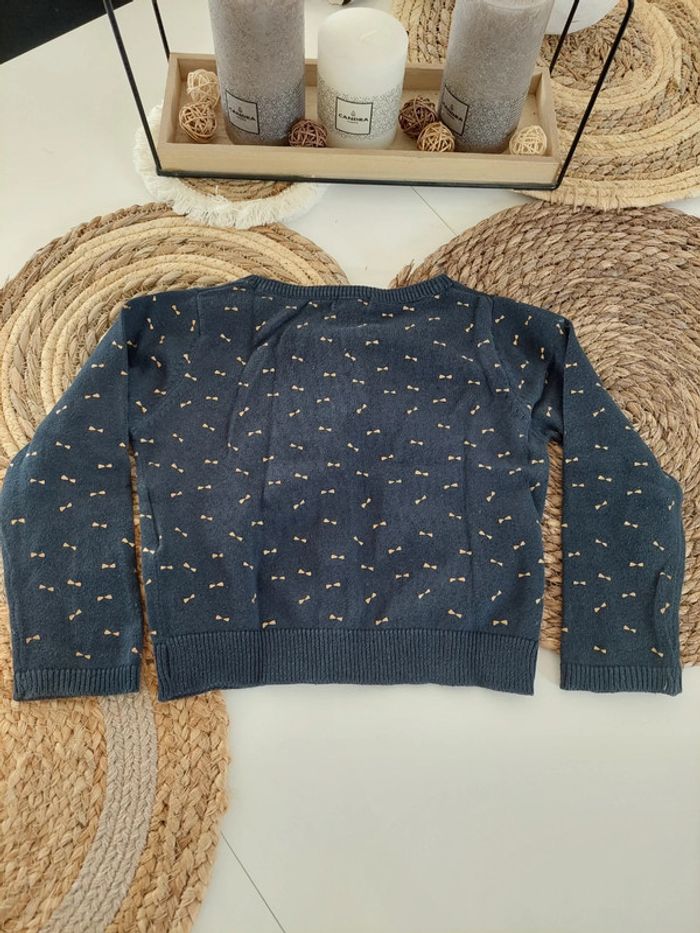 Gilet motifs nœuds dorés. Boutons bleus et dorés. Excellent état. Kiabi, 24 mois #24moisaurelilou34 #2ansaurelilou34