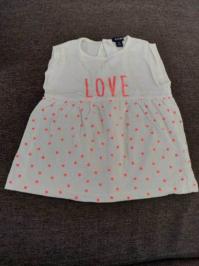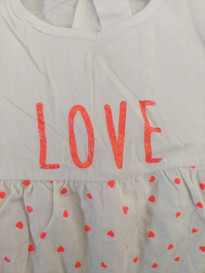 Robe d'été motifs ❤ pailletés et inscription LOVE pailletée. Pressions dans tout le dos. Kiabi, 9 mois #9moisaurelilou34