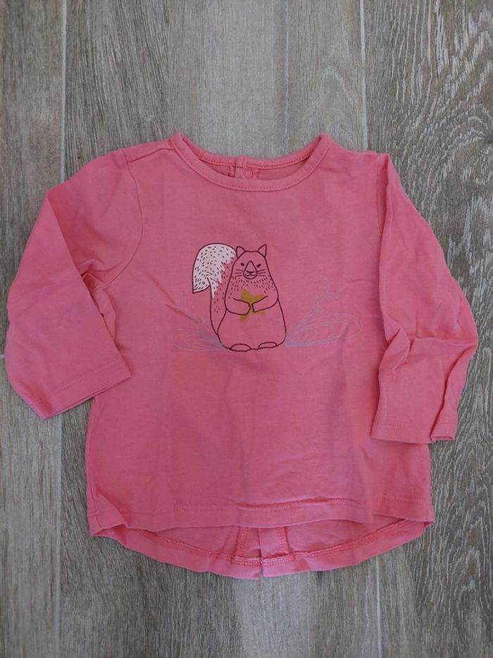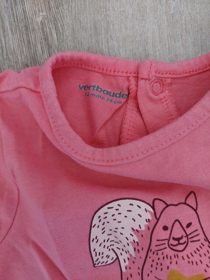 T-shirt manches longues avec pressions dans tout le dos. Motif écureuil 🐿 Vertbaudet 12 mois #12moisaurelilou34