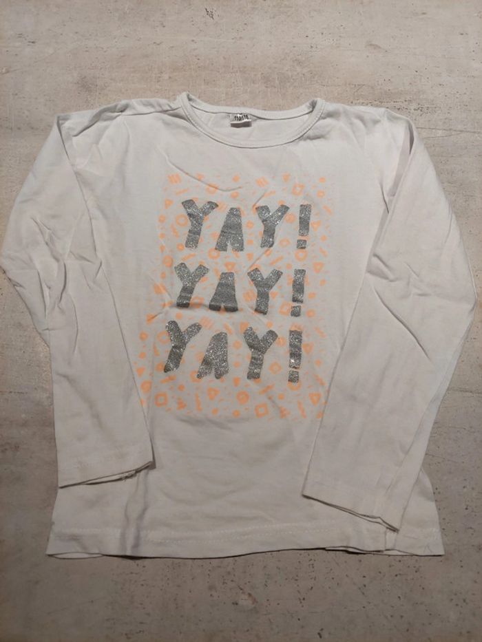 T-shirt à manches longues. Inscription en lettres argentées brillantes. Lavé mais jamais mis. Taille 6 ans, 110-116cm #6ans #6ansfille #6ansaurelilou34