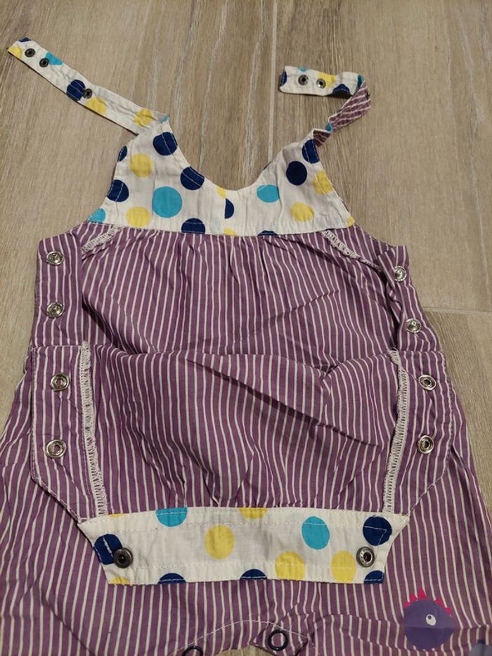 Salopette avec bretelles réglables en 3 positions par des pressions. Pressions sur le côté et entre les jambes #6mois #6moisfille #6moisaurelilou34